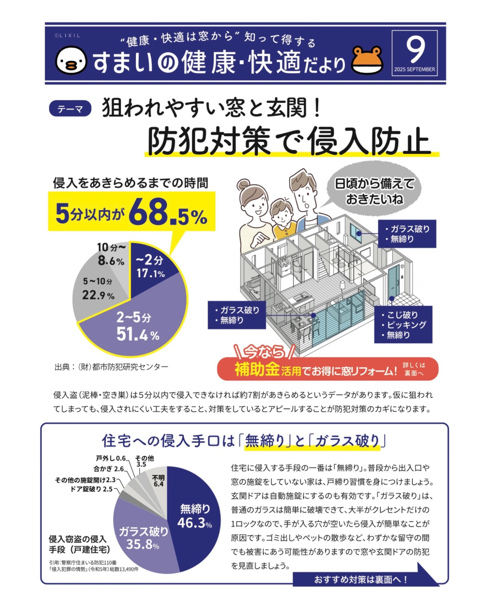 9月のテーマは 狙われやすい窓と玄関! 防犯対策で侵入防止
