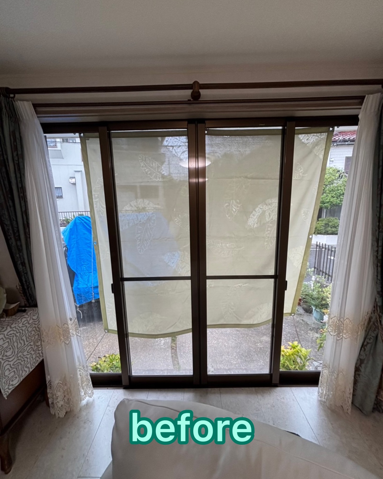 既存の窓はブラウン色の4枚建です。